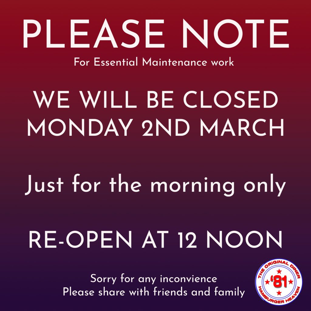 Have to say I was impressed before, many memories of buddies, whoops 81 diner. We had the wagyu burger take away tonight. I would go as far to say it’s the best takeaway experience i’ve had. The staff are impressive, welcoming and professional. Food better than excellent what more can be said